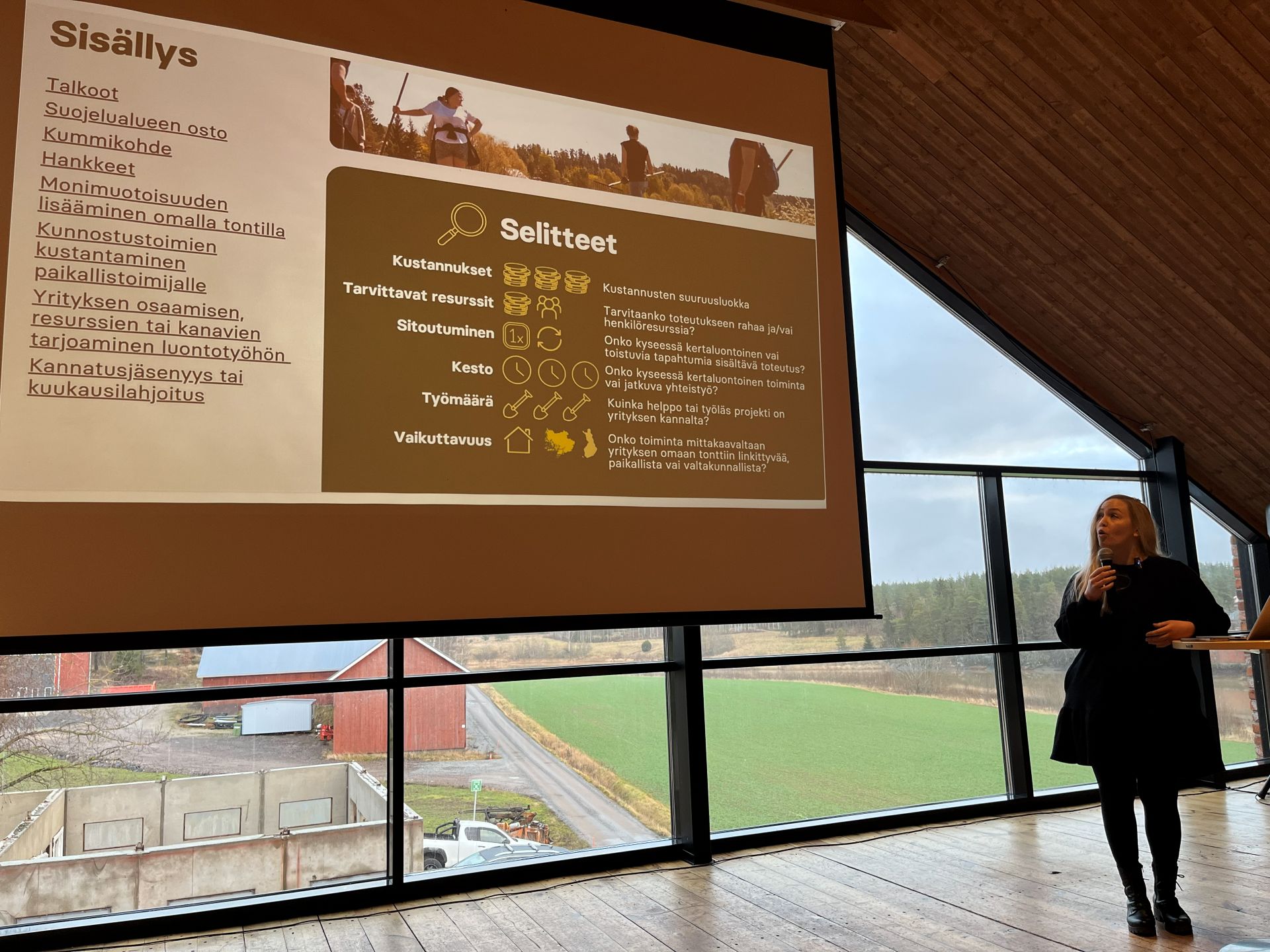 Tapahtumassa päästiin kuulemaan myös Suomen kaikkien aikojen suurimmasta luontokatoa torjuvasta Priodiversity LIFE -hankkeesta. Hankkeen terveiset toi Varsinais-Suomen ELY-keskuksen Jenny Gustafsson. Hän keskittyi kertomaan luontorahoituksen mobilisoinnista ja rahoituksen tulevaisuuden näkymistä.