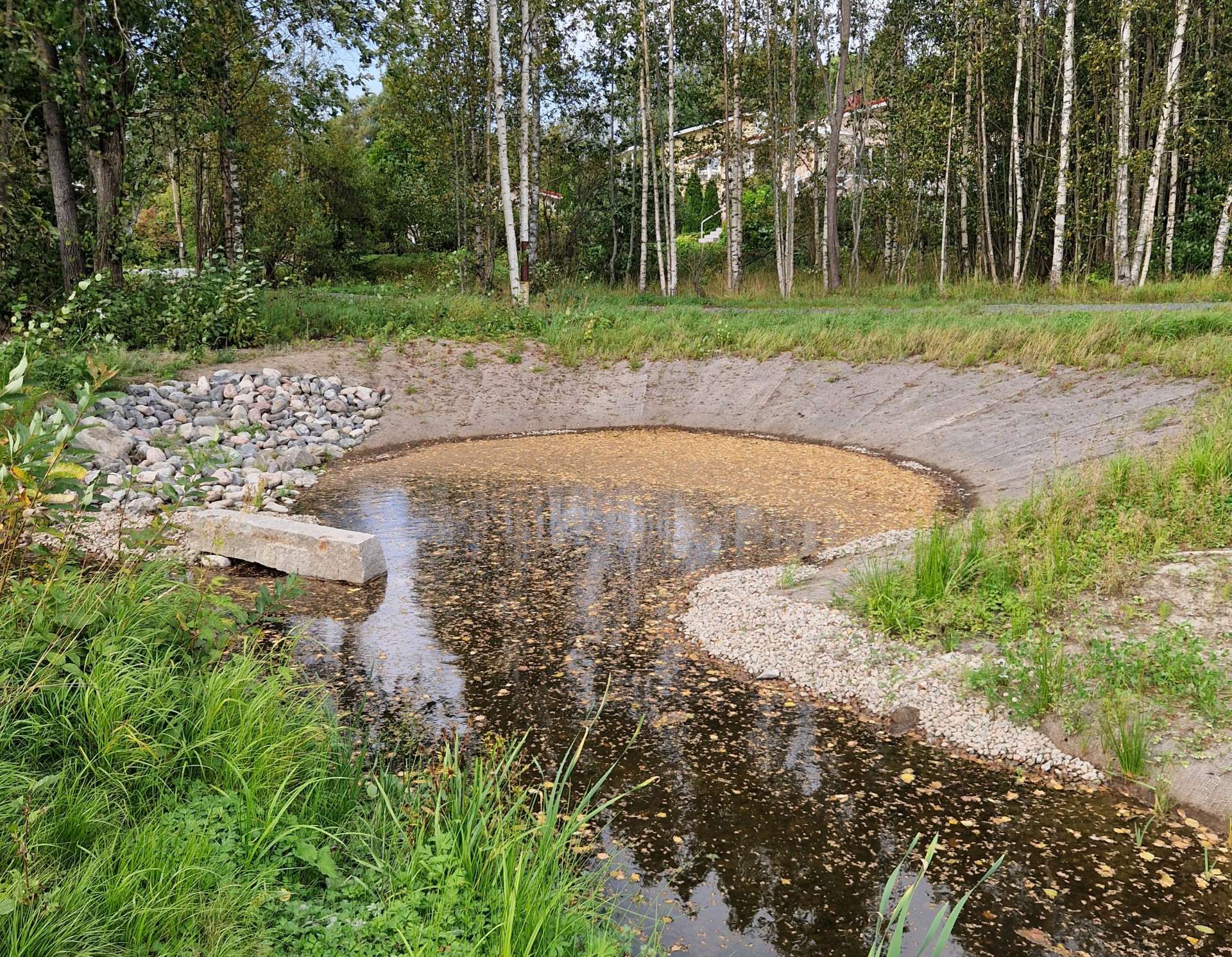 Vierailun aikana keskusteltiin Varsanpuiston uoman suoruudesta ja miten mutkittelevuus toisi lisää tulvatilavuutta sekä luonnonmukaisuutta. Mutkittelevamman uoman esteenä on kuitenkin vieressä kulkeva viemärilinja. Kohde on rakennettu kesän 2025 aikana, joten niitetyt kasvit eivät vielä kasvaneet ja alue näyttää vielä vähän rujolta. Rakenteiden toimivuus kuitenkin todettiin jo saman kesän runsaiden sateiden aikana.