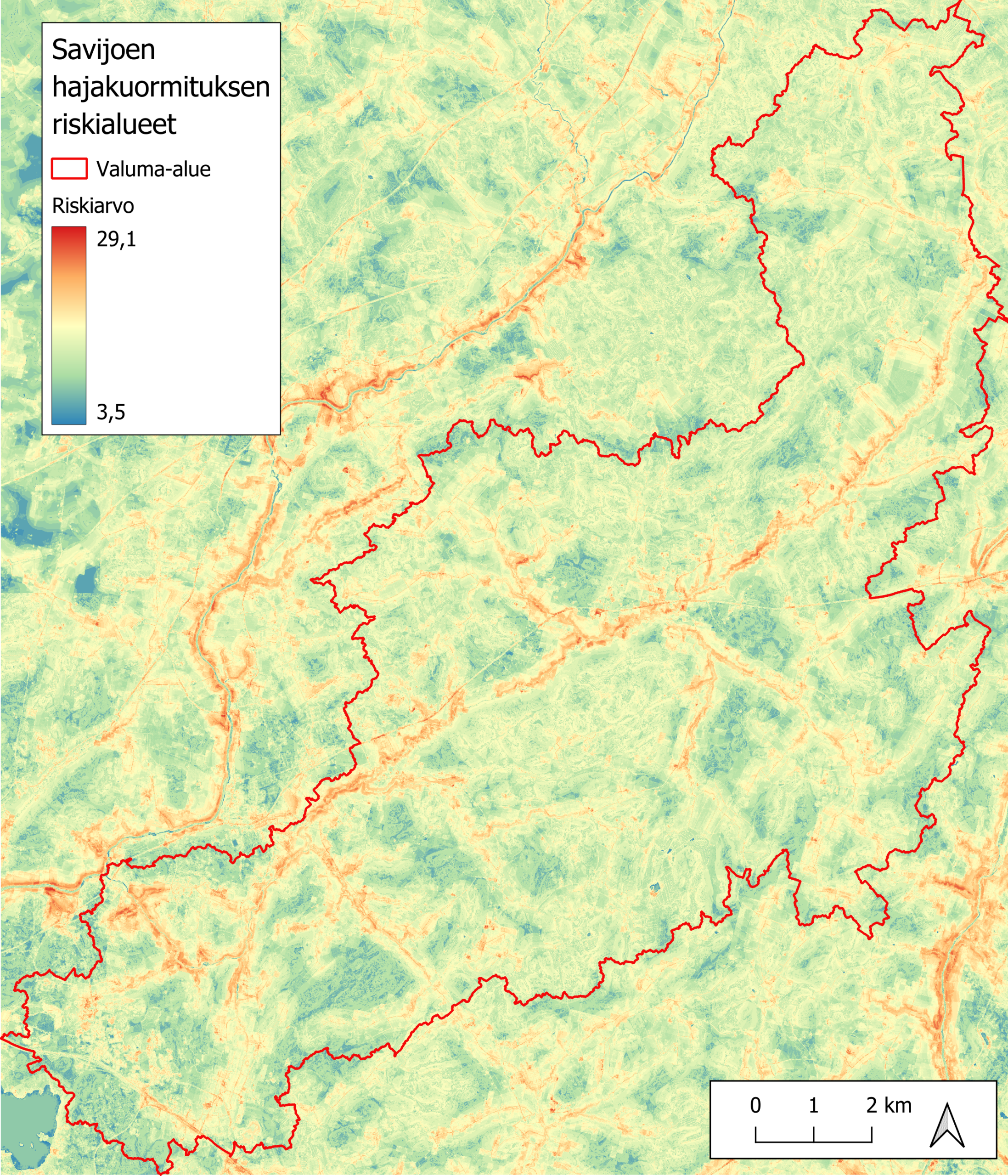 Kesäkuussa oma osuuteni Resist- ja Clivas -hankkeissa pääsikin kunnolla vauhtiin ja tein erityisesti niiden parissa töitä loppuharjoittelun ajan elokuun loppuun asti. Resistissä pääsin testaamaan WSSP (WaterShed Safety Plan) -työkalua Savijoelle, jonne on tekeillä valuma-aluesuunnitelma. WSSP on Hämeen ammattikorkeakoulun kehittämä QGIS-pohjainen menetelmä, jolla voidaan tarkastella alueellisia hajakuormituksen riskialueita ja jota voidaan hyödyntää esimerkiksi juuri valuma-aluesuunnittelun tukena. WSSP:llä tein Savijoen valuma-alueelle esimerkiksi maaston kaltevuuden, kasvillisuuden ja maankäytön perusteella erilaisia riskitasoja, jotka yhdistin lopulta yhdeksi riskikartaksi.