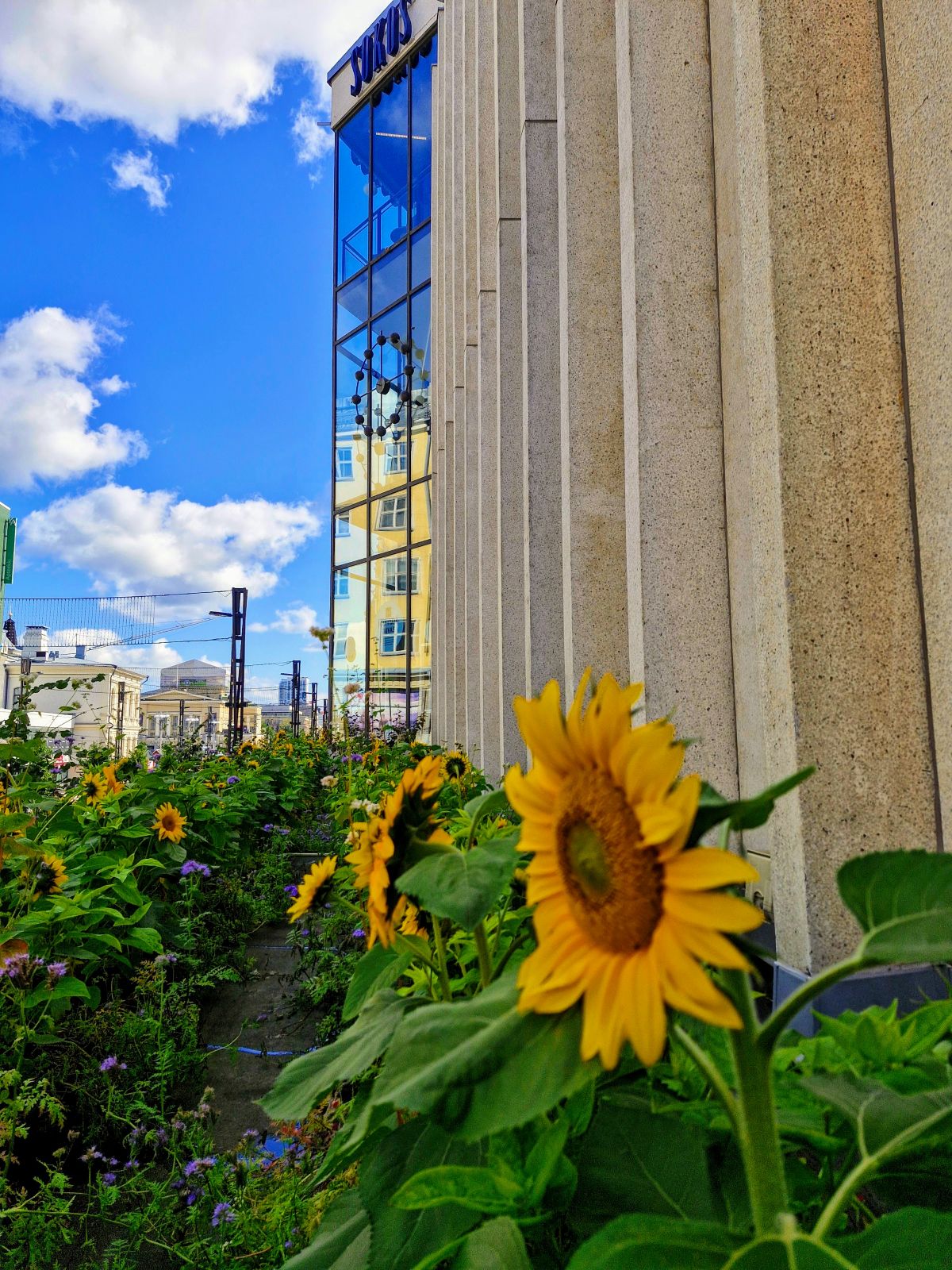 Toteutimme Pirkanmaan Osuuskaupalle Sokoksen oven lipalle Pölyttäjätaivaan viherelementeillä.