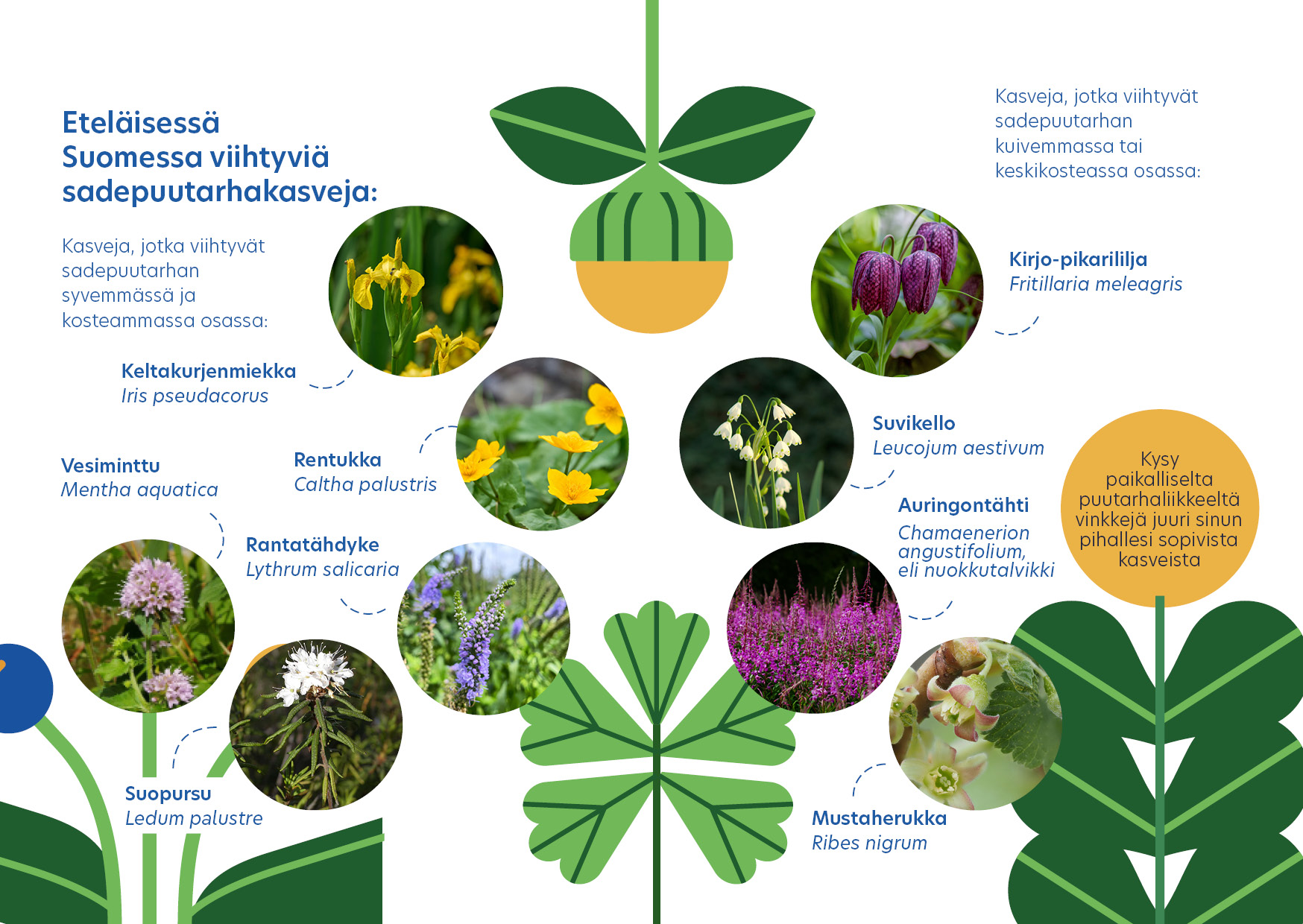 Kaikki sadepuutarhaan tarvittavat kasvit, mullat, pumput, tarvikkeet ja neuvot saat Flör Garden Centeristä
