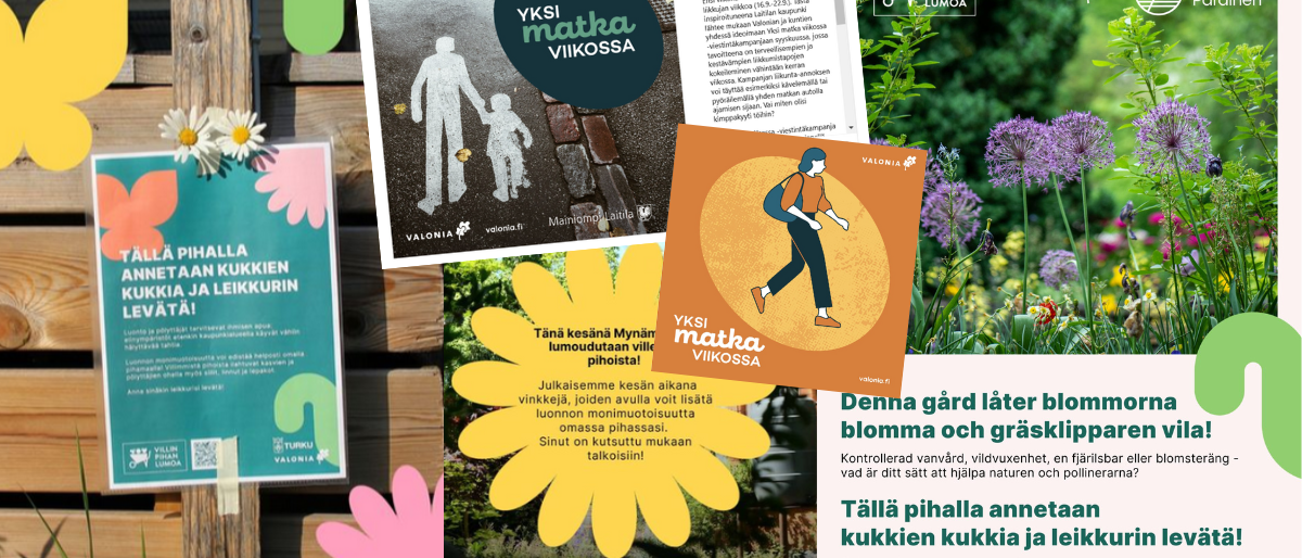 Jatkoimme myös työtämme kuntien ilmasto- ja luontoviestinnän kumppanina. Järjestimme keväällä työpajan, jossa yhdessä kuntien asiantuntijoiden ja viestijöiden kanssa ideoimme viestintäkampanja-aihioita kuntien ilmastoviestintään ja asukkaiden ilmastotoimien tueksi. Kaksi eniten kannatusta saanutta ideaa eteni jatkokehitykseen. Kesällä pääsimmekin käynnistämään Villin pihan lumoa -kampanjan, ja Liikkujan viikolla syyskuussa päivänvalon näki kestävään arkiliikkumiseen kannustava Yksi matka viikossa -kampanja. Kampanjoita toteuttamaan lähti kaikkiaan yhdeksän eri kuntaa. Kampanjat jatkuvat vuonna 2025 ja mukaan ovat tervetulleita muutkin kunnat!
